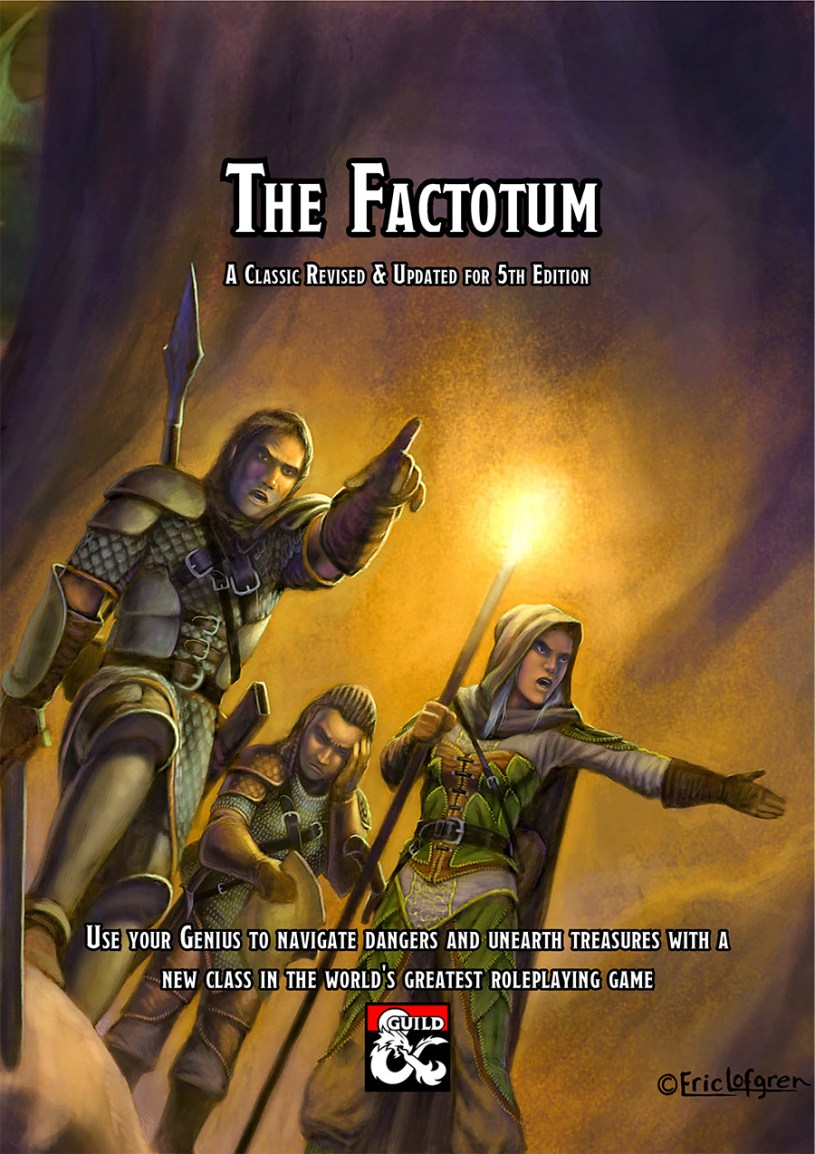 Back in during my days of playing Dungeons & Dragons 3.5 Edition, there was a lot of different base classes available to satisfy a plethora of game styles and flavor. One of them that always caught my eye was the Factotum, which was featured in the Dungeonscape supplement. The supplement itself wasn’t memorable, in fact, it mostly dealt with tips and advice (along with tables) for DMs to create intricate dungeon crawls. But the Factotum was a standout, conceived as a real jack-of-all-trades class than even the humble bard. Sometime back in 2017, I wanted to bring back this class into the modern design philosophy of 5th Edition. But how? It took some thoughts, drafts, and even me forgetting about it for half a year for that spark of genius to arrive. I spent some time writing the initial draft, doing my best to not just create a carbon copy of the original forced to fit within the constraints of the new ruleset but instead, make it unique on its own while paying proper homage to all that it represented: creativity.